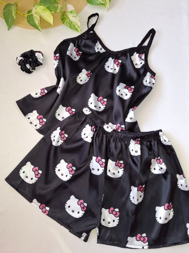 ناموجود ست تاپ و شورتک ساتن عروسکی لبوبو