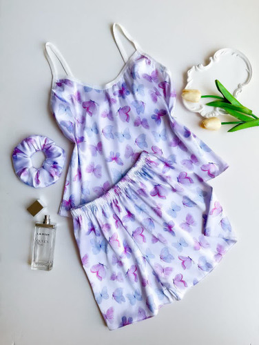 ست تاپ و شورتک ساتن پروانه آبرنگی
