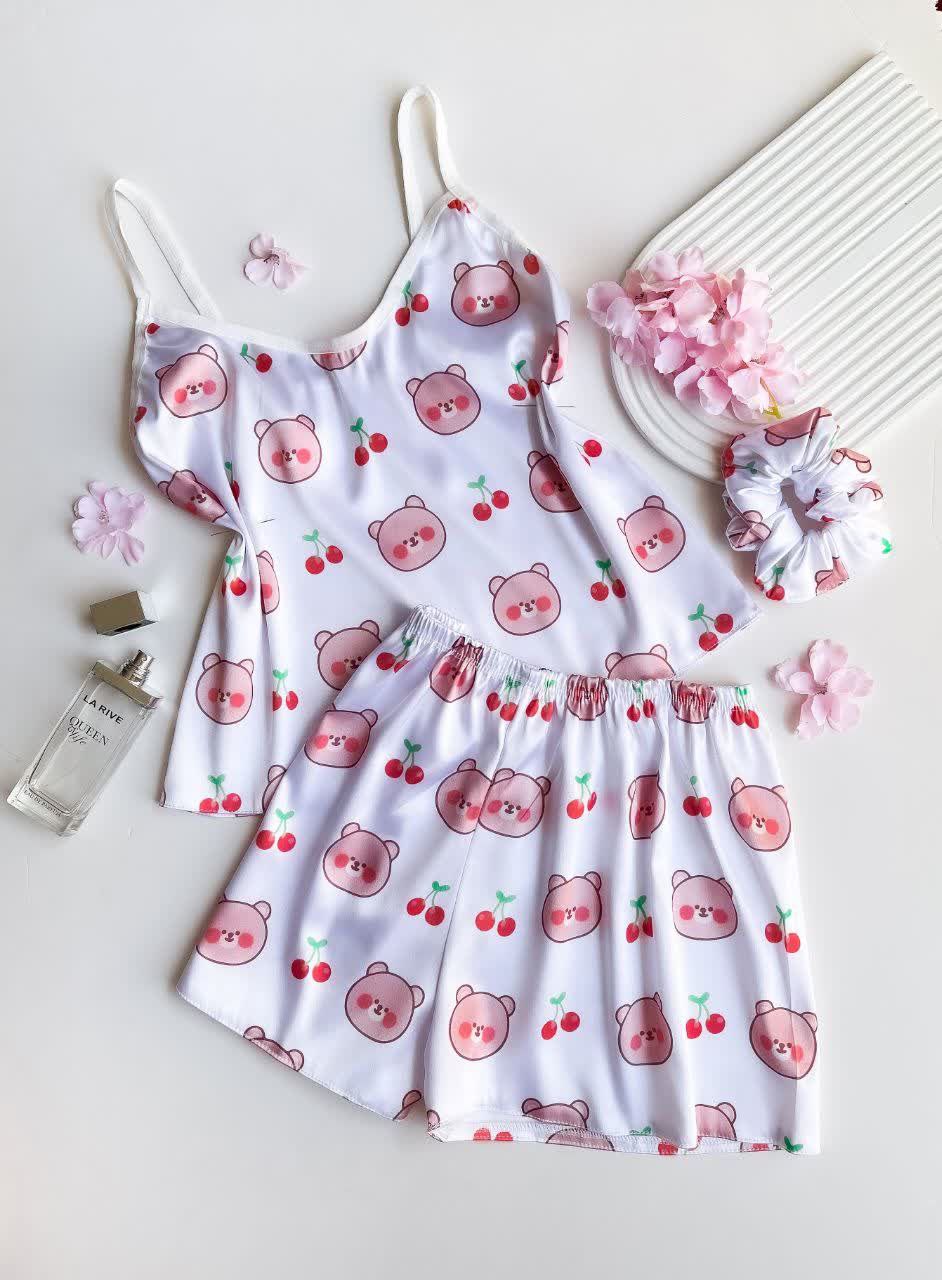 ناموجود ست تاپ و شورتک ساتن پاندا سفید