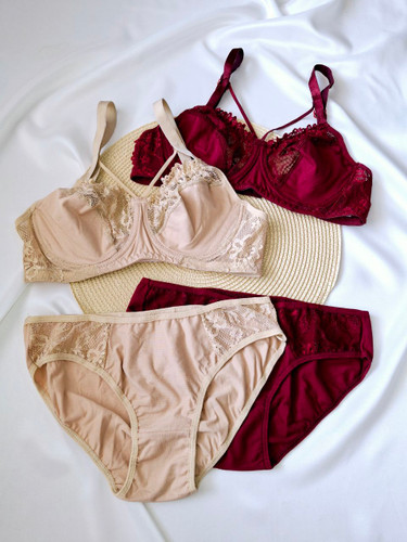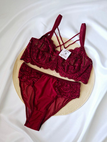ست شورت و سوتین گیپوری زرشکی