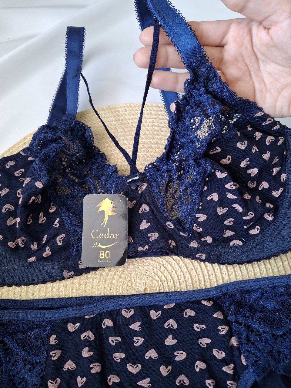 ست شورت و سوتین نخی قلبی سرمه ای