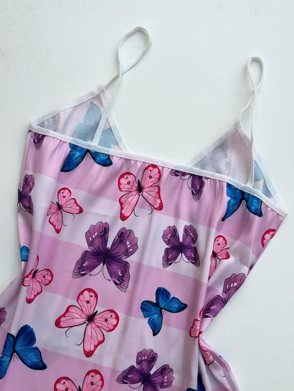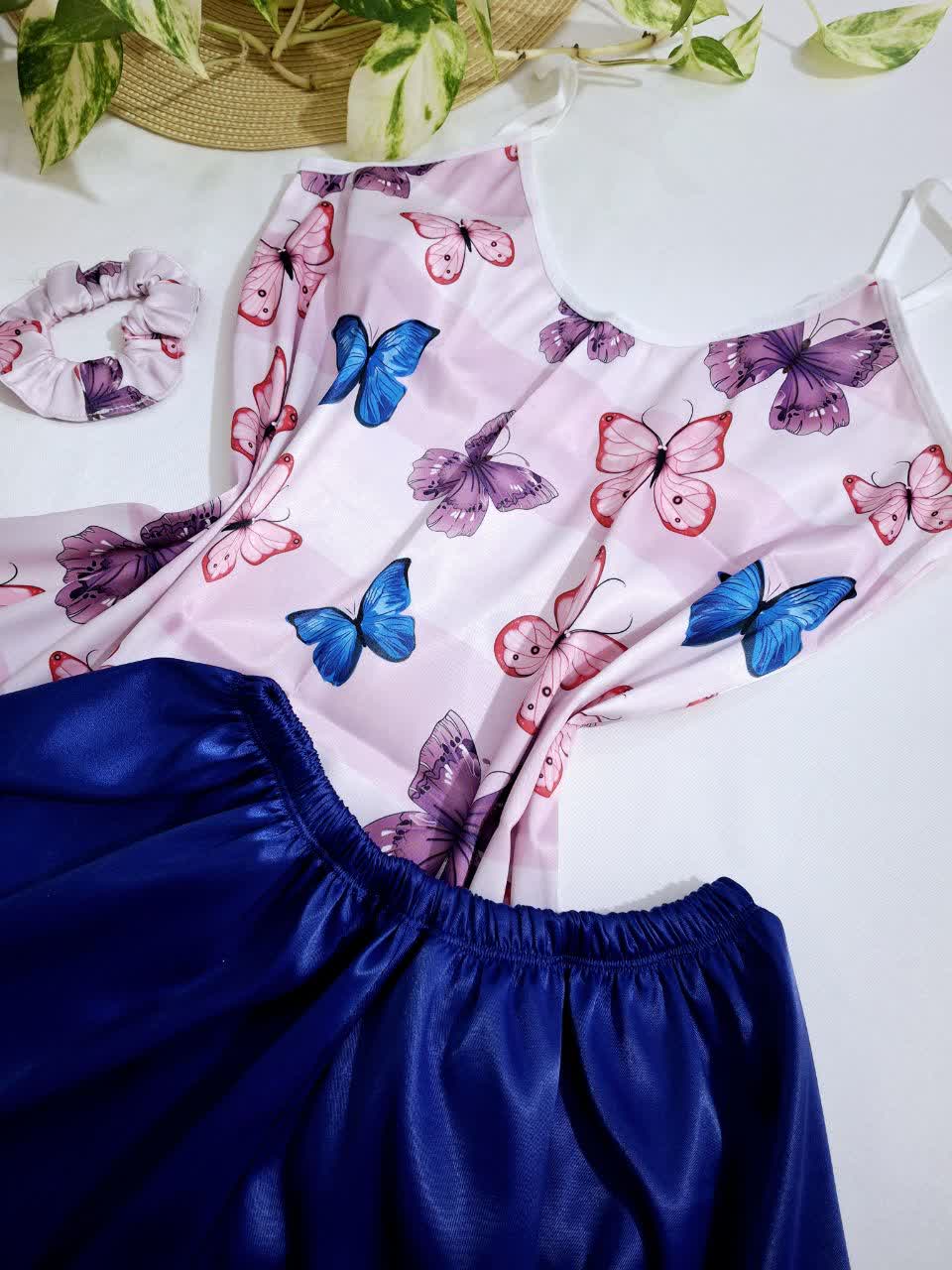 ست تاپ‌ و شورتک ساتن پروانه آبی