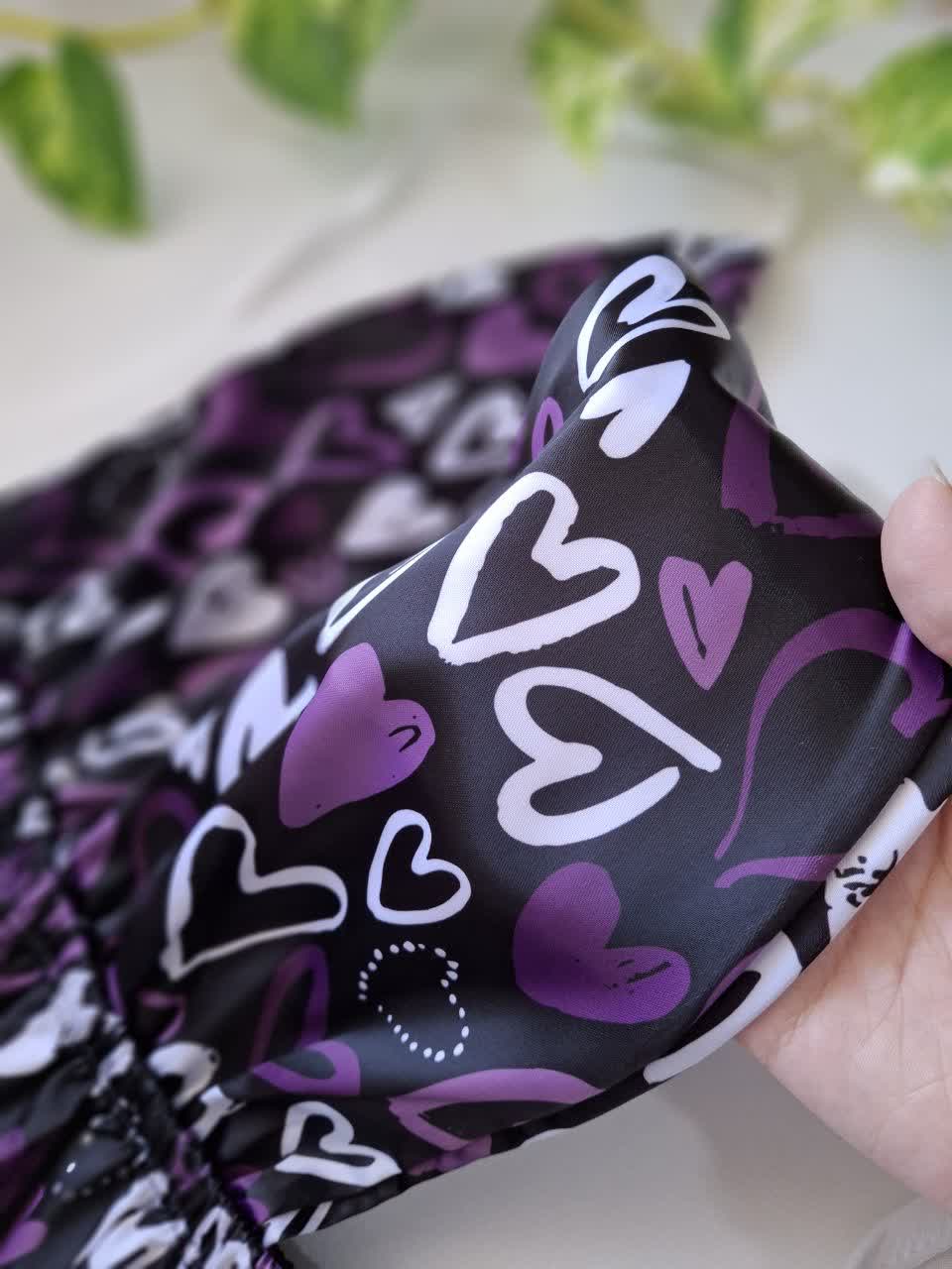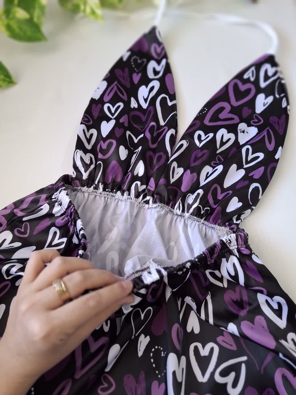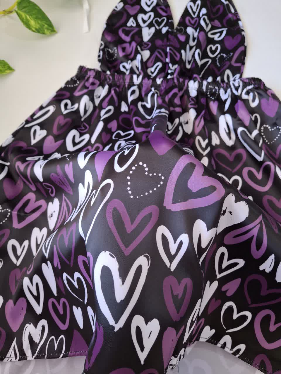 لباس خواب ساتن قلب بنفش